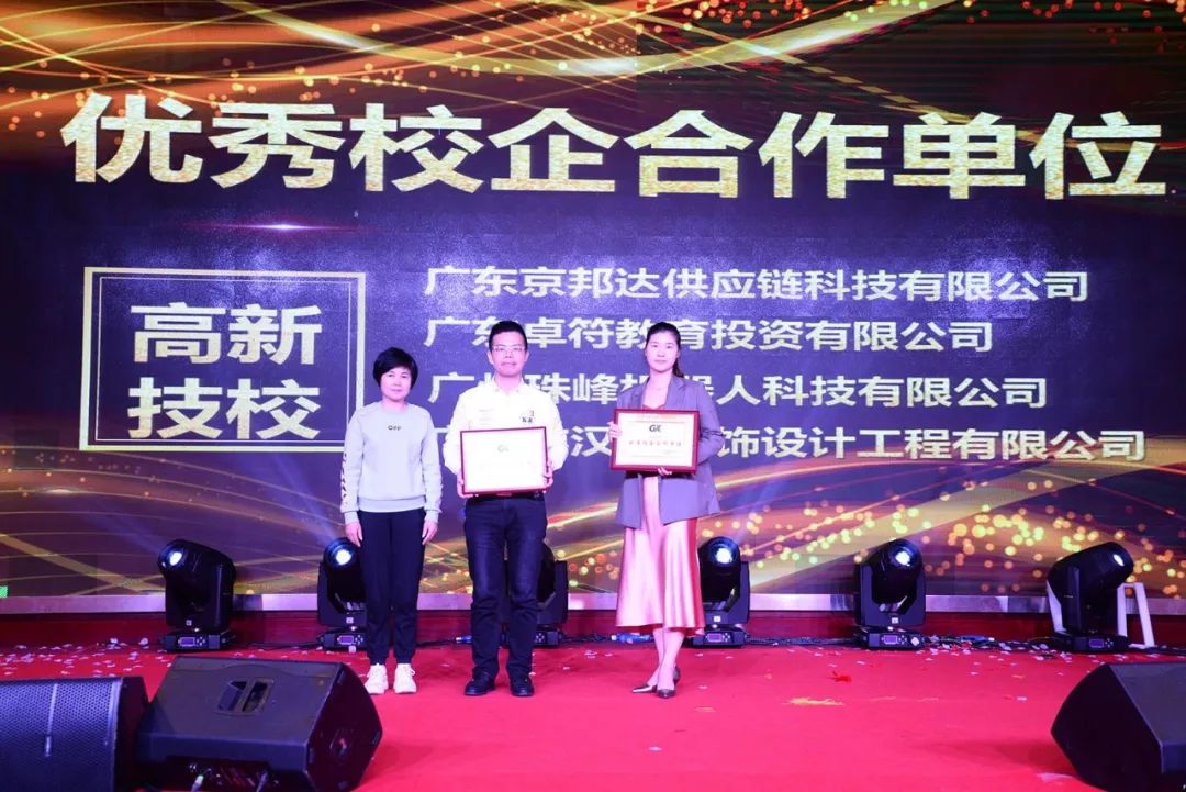 同時,活動現(xiàn)場為廣東省高新技術(shù)高級技工學(xué)校的校企合作單位:廣東京邦達(dá)供應(yīng)鏈科技有限公司、廣東卓符教育投資有限公司、廣州珠峰機(jī)器人科技有限公司、廣州市漢典裝飾設(shè)計工程有限公司;廣州市高新醫(yī)藥與食品技工學(xué)校的校企合作單位:廣州建國酒店、大參林醫(yī)藥集團(tuán)股份有限公司、佛山市三水區(qū)西南街金百合美容中心進(jìn)行了優(yōu)秀校企合作單位的表彰。