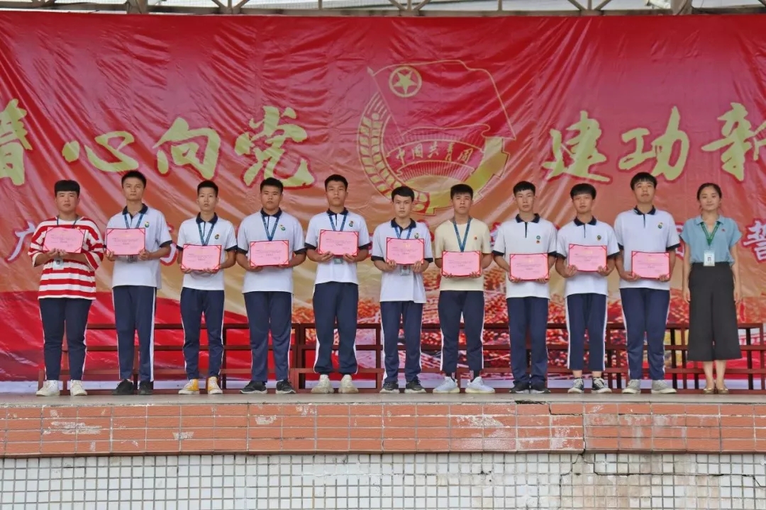 廣東省高新技術高級技工學校新團員入團宣誓儀式暨優秀團組織表彰大會于2019年5月27日16:10在西區足球場隆重舉行。參加本次大會的領導有:文建友副校長、學生處曾成處長、學生處陳偉副處長、團委書記劉榮榮、汽車工程系鄭大國主任、藝術與計算機系王慶有副主任、經貿系姚幸連副主任。參加大會的還有在校1833名團員。