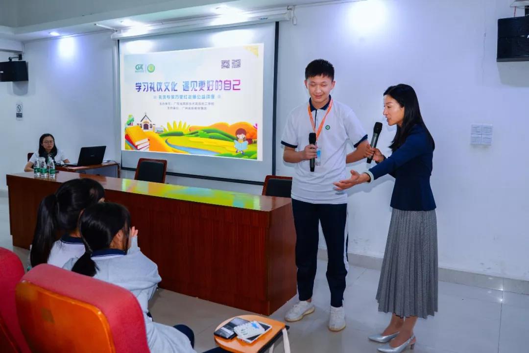 11月8日-9日,萬禮公益服務(wù)中心創(chuàng)始人萬里紅老師應(yīng)高新教育集團(tuán)邀請,在廣東省高新技術(shù)高級技工學(xué)校天培樓會議室,為師生們帶來了關(guān)于“學(xué)習(xí)禮儀 遇見更好的自己”的講座。