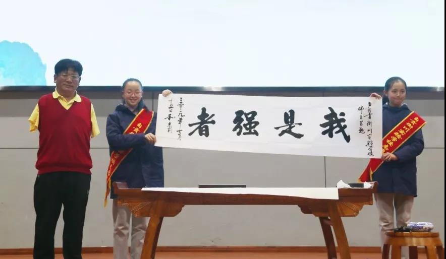 隨后,和老師現場揮毫潑墨,獲得了師生雷鳴般的掌聲。這掌聲是為其遒勁書法,更為其勵志人生。
