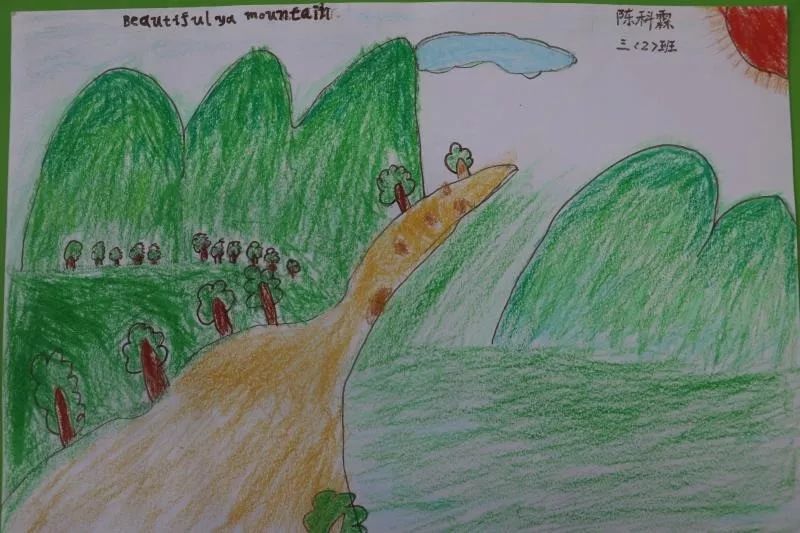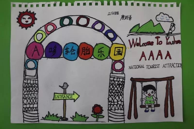 同樣的,為了準備研學課程,孩子們還用英語認真的做了丫山海報。讓我們來看看大余衡實三年級孩子們的作品吧!