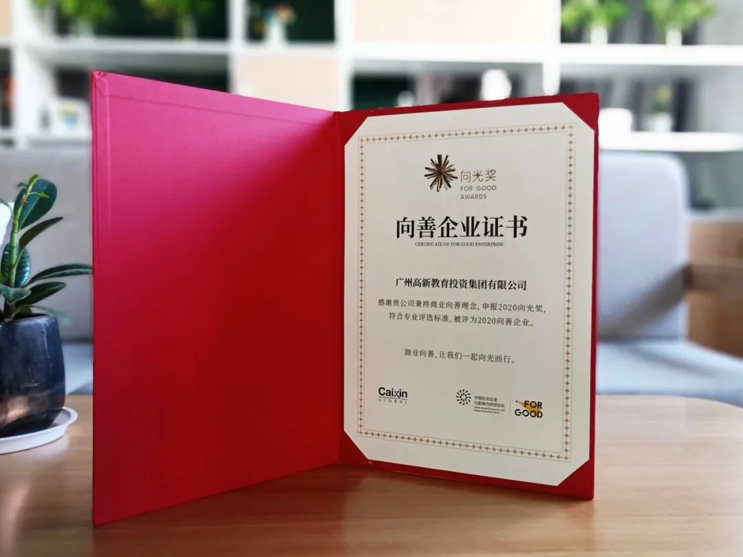 廣州高新教育集團成功入選2020向光獎|向善企業名錄,榮膺“向善企業”榮譽。