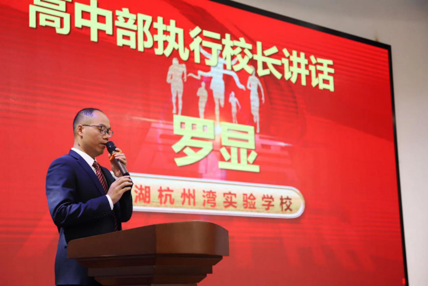 高中部執(zhí)行校長羅顯發(fā)言,羅校長強調(diào)三點:一、堅定首考必勝的信念;二、嚴(yán)格按照計劃復(fù)習(xí);三、每一個人都要竭盡全力。羅校長以獵狗和兔子的寓言故事告訴同學(xué)們盡力而為與竭盡全力的區(qū)別,激勵同學(xué)們要在首考竭盡全力,用拼搏決勝高考,提前奠定高考基石!