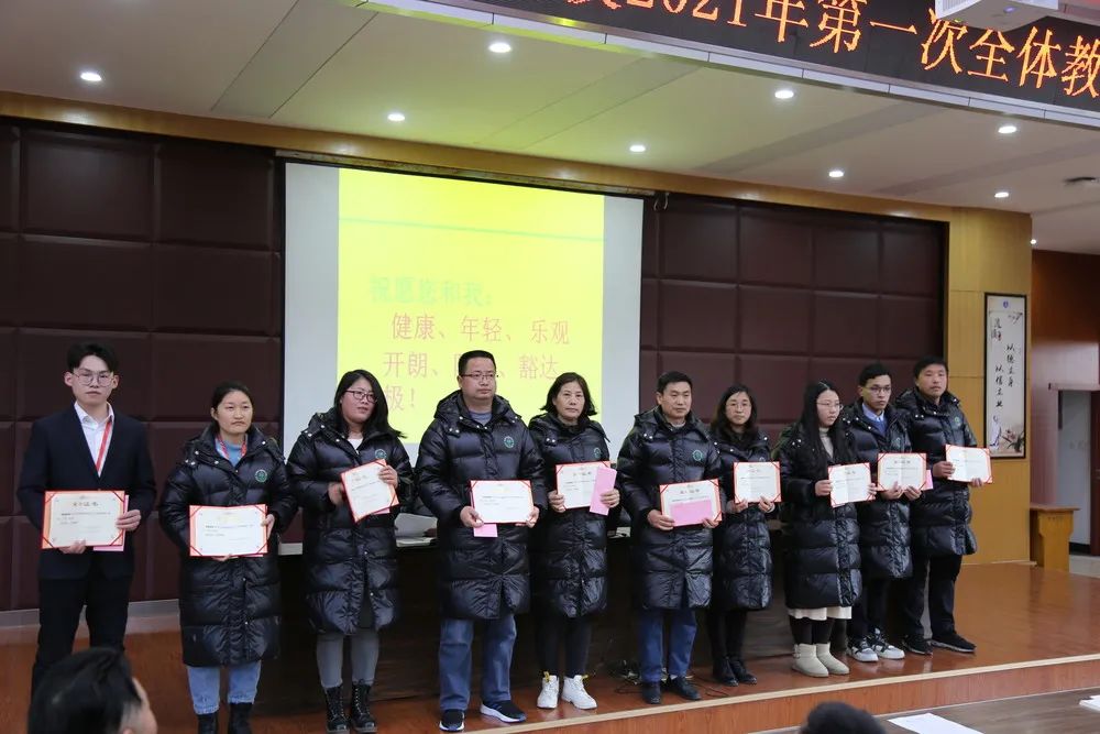 謝校長熱情高昂地宣讀獎項類別及其獲獎名單,各位獲獎教職工分別按照優秀備課組、優秀班主任,優秀新銳教師,年度優秀老師,優秀職工、抗疫先鋒、優秀宣傳工作者的獲獎順序,在熱烈地掌聲中紛紛上臺接受領導頒獎。